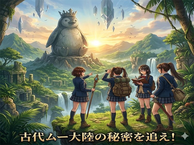普通の女子校生が、突如として現代に姿を現した伝説の『ムー大陸』へ強制転移!そこで彼女たちを待ち受けていたのは、なんと人語を操る超神々しいアデリーペンギンたちだったんだ。