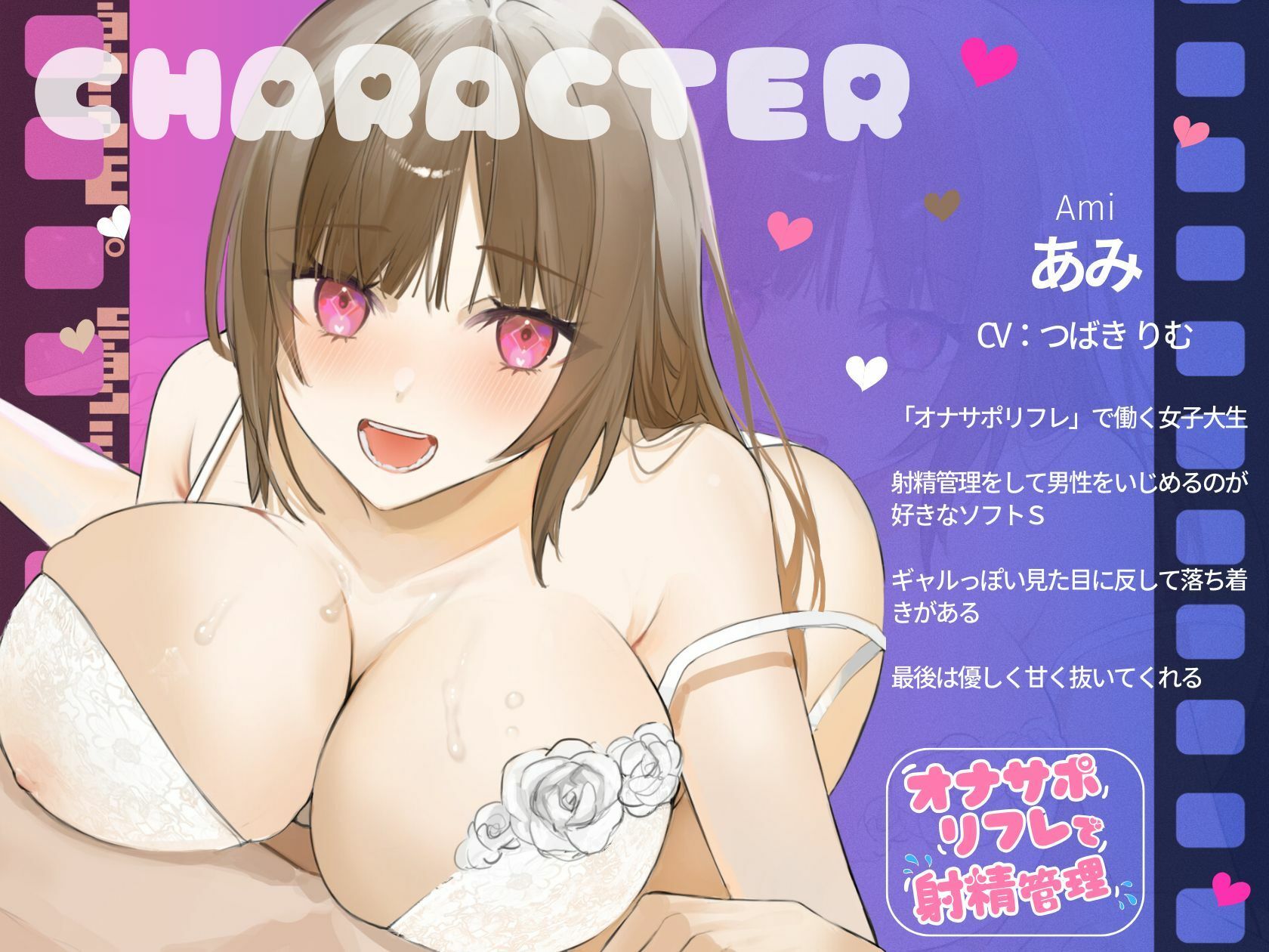 CVを担当するのは、癒やしと刺激のスペシャリスト・つばきりむさん。彼女の吐息まじりの声で「まだ出しちゃダメだよ?」なんて囁かれたら、理性なんて一瞬で飛んでいくこと間違いなし!