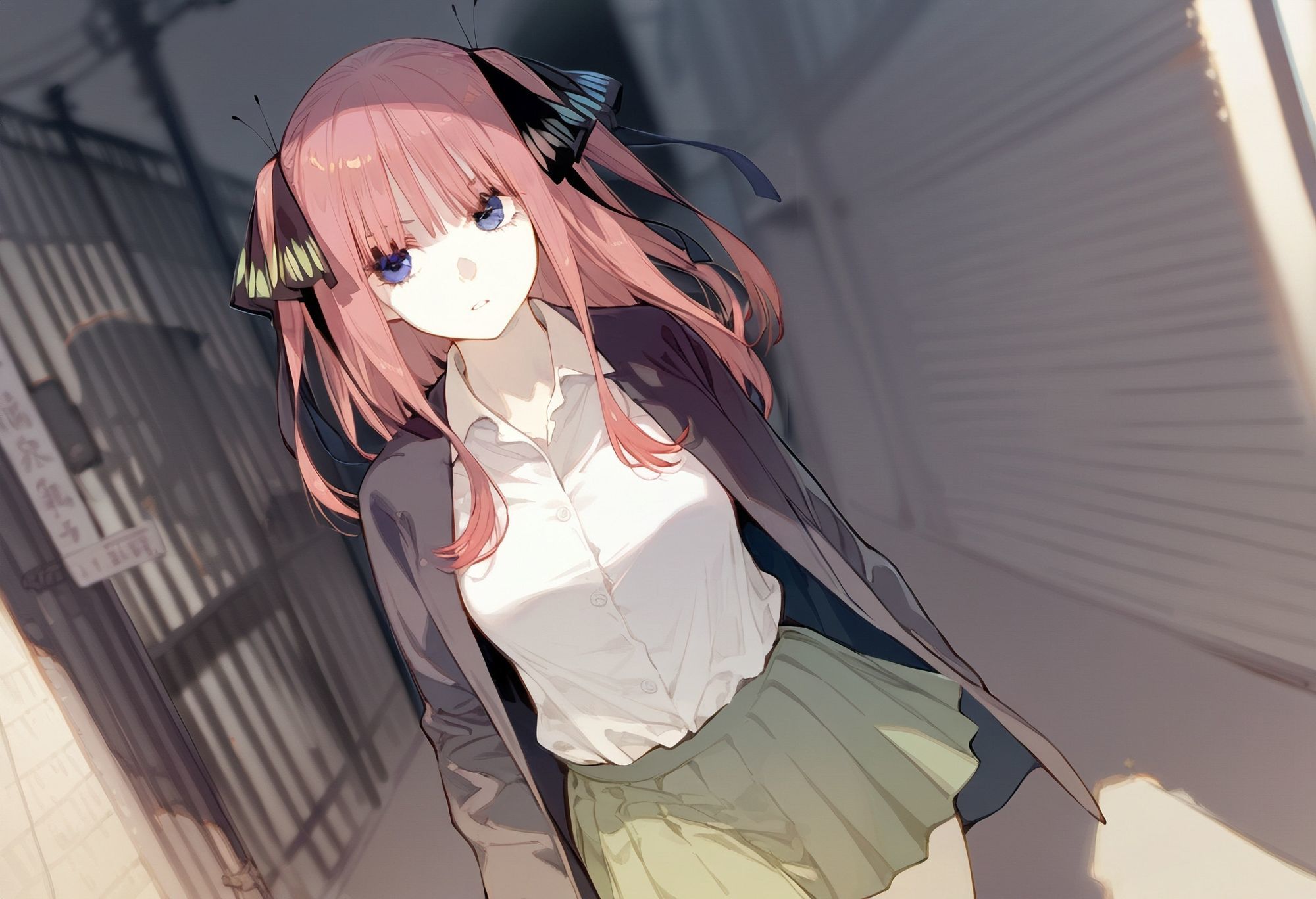 制作には話題のNovel AIを駆使し、さらにPhotoshopの「スーパー解像度」で限界まで高画質化を敢行!解像度は基本的に2432×1664という圧倒的な精細さを実現した。二乃の肌の輝きから、路地裏の湿った空気感まで、細部までガッツリ拝めるぜ。