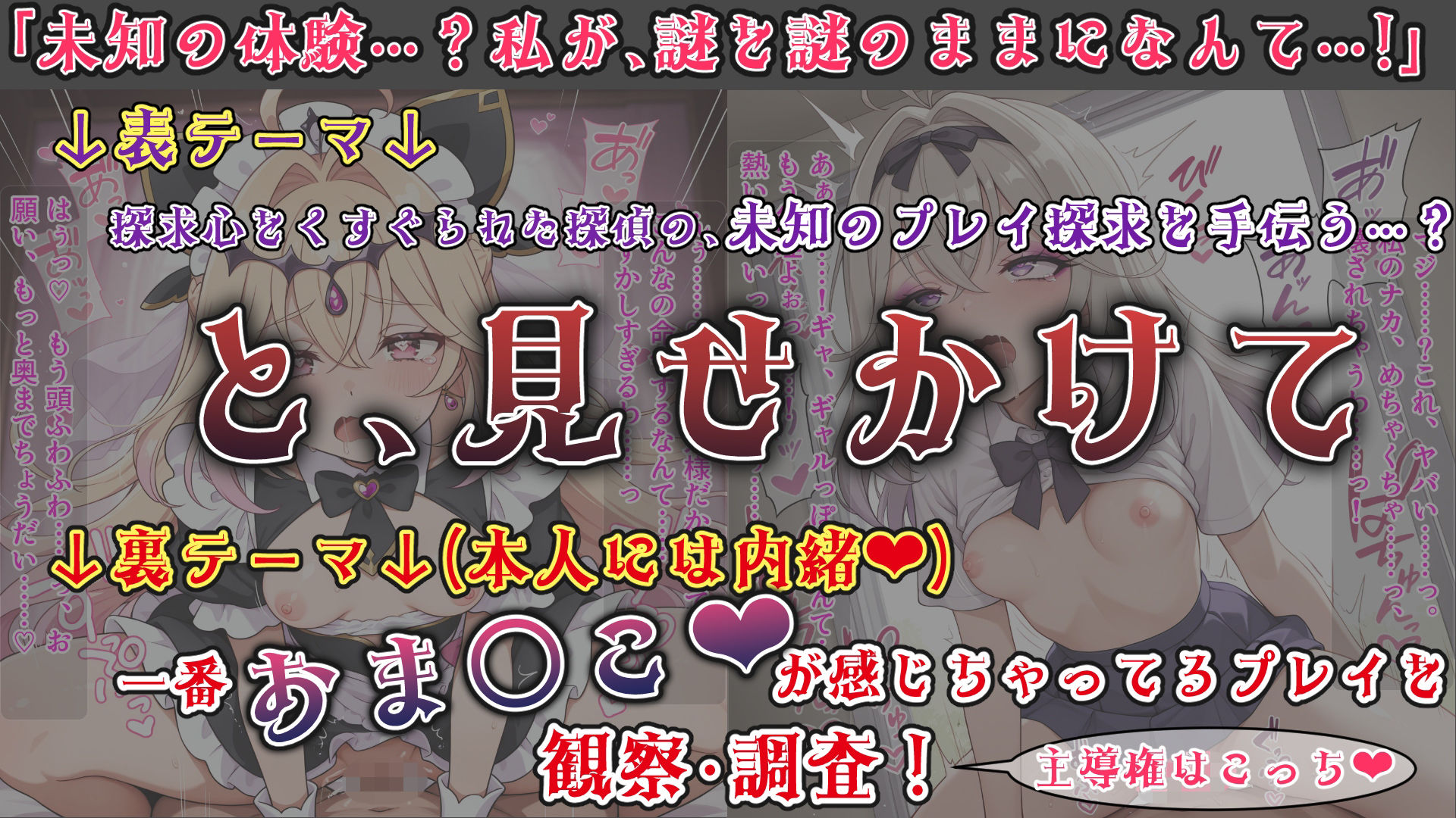 「未知のプレイを調査したい」なんて、彼女らしい真面目な動機をエサに、キミが仕掛けるのは「彼女自身の性癖を暴き出す」という最高にエロいバックステージ・プロジェクト。自分でも気づいていなかった悦びの深淵に、彼女がズブズブと沈んでいく様を特等席でじっくり観察しちゃおうぜ!